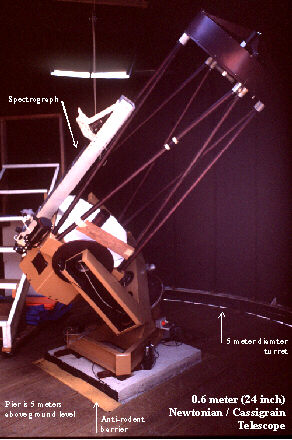 To assist us in recording celestial phenomena, Starlight Theatre uses an observatory located under dark rural skies. It houses a 24 inch Newtonian/Cassegrain telescope equipped with film and electronic camera equipment, video and movie cameras. |