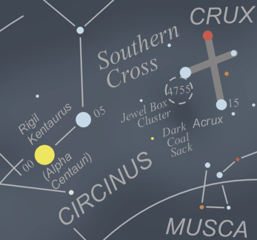 How beginners look at and learn about the sky? Generally we look up from the horizon. So we need a star map that will show an undistorted horizon. It is impossible for circular planispheres to show a true picture of the low constellations. As planispheres, our maps will show what stars will be visible on any night of the year and hour of the night. However unlike the circular designs, they do not have the troublesome distortions inherent in the circular versions and they display more useful information without clutter. These maps show the sky visible from the USA, Canada, Caribbean, Europe and Asia. A detailed view (59K) of the colour map shows the area around the Constellation of Crux. Learn the stars while you eat! These are 11 x 17 inch double sided star maps printed on heavy bond paper and laminated to endure evenings of heavy dew and repeated wipes with a damp cloth. They are excellent for learning the sky and for use as a table mat. |
